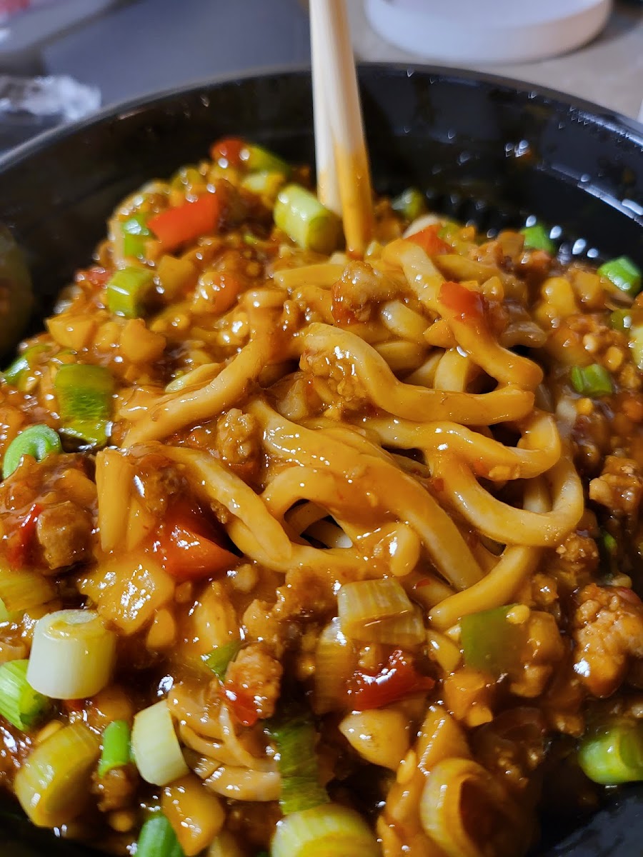 For those who crave bold flavors, the Mongolian Beef from the Asian Noodle Bar is a must-try, as one customer, Jerrod Bonacci, described it as “spicy and great,” though be prepared for it to arrive piping hot!